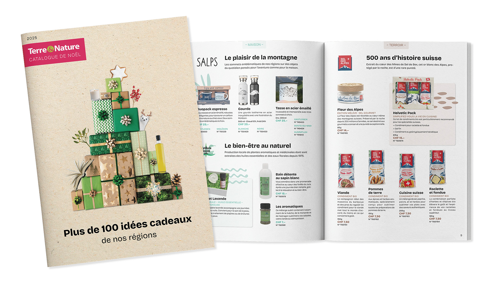 Découvrez dès aujourd’hui notre Catalogue de Noël Terre&Nature 2025, rassemblant plus de 100 idées cadeaux de nos régions. Vous y trouverez une sélection soignée de produits locaux et artisanaux : livres, jeux, bijoux faits main, cosmétiques naturels, outils de jardin, produits du terroir et bien plus encore.