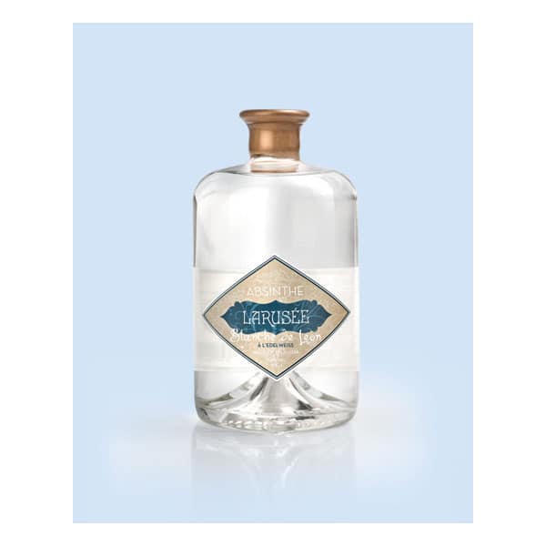 Absinthe Blanche de Léon de Larusée, hommage à Léon Duvanel. Une absinthe florale à l’edelweiss bio, aux notes de foin et de pain d’épices, élaborée en petite quantité.