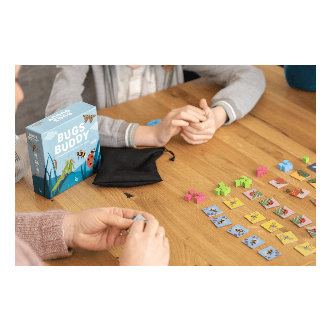 Les insectes sont primordiaux pour la survie de notre écosystème. Protégez-les en créant des nuées d’insectes, et profitez en pour vous débarrasser le plus rapidement de vos cubes. À votre tour, créez ou complétez une nuée d’insectes avec l’une de vos tuiles. Posez le nombre de cubes correspondant à la taille du groupe sur la table, et rendez à vos adversaires les cubes déjà présents. Miserez-vous sur la coccinelle, la fourmi ou plutôt la mante religieuse ? 9 types d’insectes différents offrent autant de possibilités d’action, mais attention à bien anticiper les prochains choix de vos adversaires si vous ne voulez pas récupérer tous vos cubes et repartir de zéro !