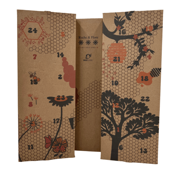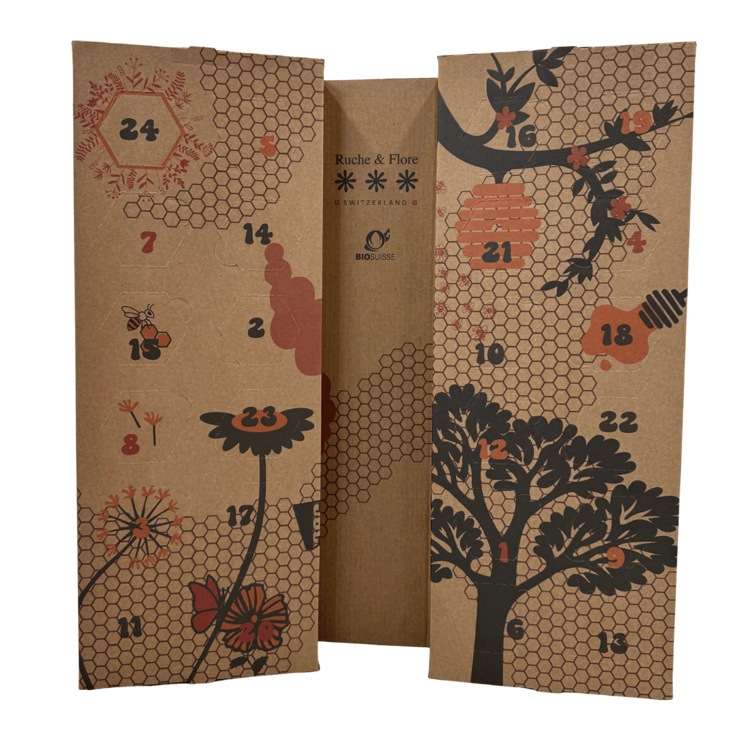 Préparez les fêtes de fin d’année avec un cadeau unique : le Calendrier de l’Avent Ruche & Flore. Derrière ses 24 cases se cachent de véritables trésors issus directement de nos ruches et de celles de nos collègues apiculteurs passionnés. Chaque jour de décembre devient une expérience sensorielle, une découverte de nouvelles saveurs, entre tradition, nature et gourmandise.