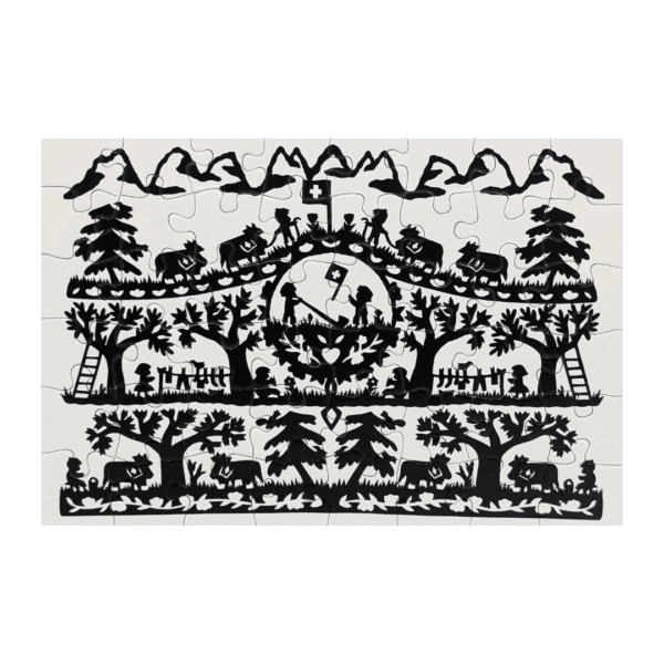Ce puzzle rassemble plusieurs symboles emblématiques du pays. Des sommets enneigés des Alpes aux scènes de la vie paysanne traditionnelle, cette carte postale offre un aperçu des différentes facettes de la Suisse. Chaque élément de l’image représente une partie de l’âme de ce pays, où nature et culture se rencontrent harmonieusement.