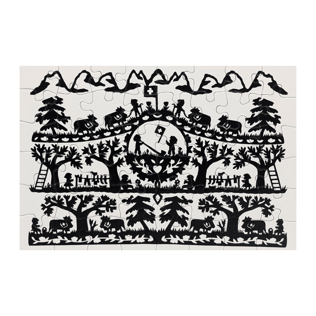 Carte puzzle : Entre nature et tradition ! Découvrez la Suisse à travers un puzzle de 48 pièces, des Alpes à la vie paysanne, un voyage visuel entre nature et culture.