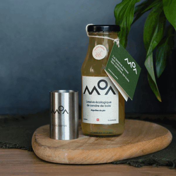 Lessive écologique suisse à base de cendres valorisées, biodégradable et locale — MOA, nettoyage responsable et innovant.
