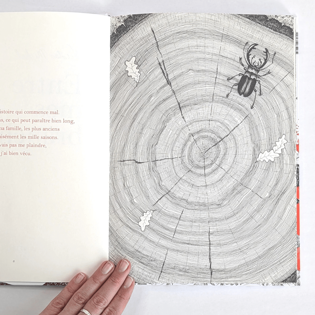 Connaissez-vous vraiment la vie d’un arbre ? Entre mes branches donne voix à cet être mystérieux et silencieux en apparence. De sa jeunesse en tant que jeune pousse jusqu’à sa chute sous la scie, l’arbre raconte les animaux qui se réfugient sous son feuillage, les intempéries qui font frissonner ses racines, ou encore les cabanes bâties dans ses branches. À travers des pages finement illustrées, le lecteur saisit l’essentiel : la nature et ses habitants vivent en harmonie, souvent ignorée ou méconnue par l’homme.
