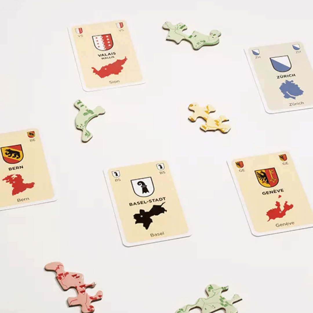 Pour gagner, soyez le premier à assembler votre puzzle de la Suisse. Gagnez des pièces en répondant aux questions le plus vite possible grâce à vos cartes réponse. Toutes les informations se trouvent sur la carte centrale ou sur vos cartes : ici, ce n’est pas la connaissance qui compte, mais la rapidité à trouver la bonne réponse.