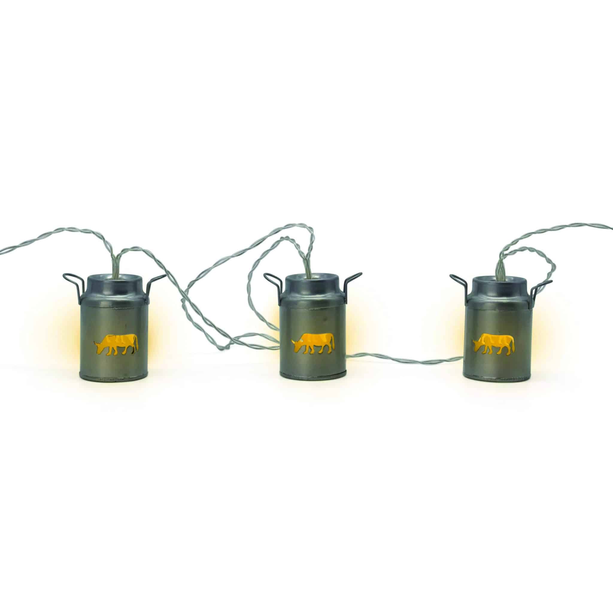 Guirlande lumineuse LED – Boille à lait : 7 ampoules LED, 415 cm, design 3D inspiré des pots à lait anciens, éclairage chaleureux intérieur et extérieur.