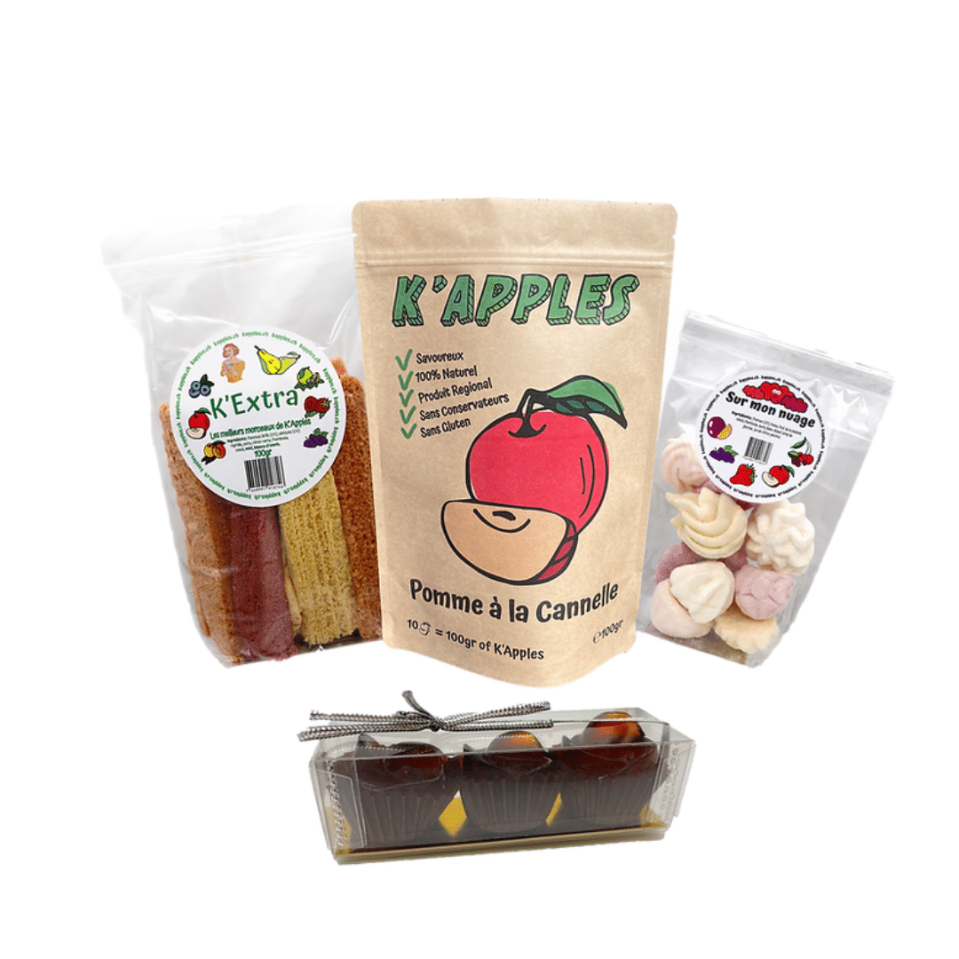 Conçu pour les novices, ce kit réunit toutes les variétés emblématiques de la marque : K’Extra, K’Apples pomme-cannelle, mix de nuages et M’Apples, de délicieuses gelées issues du jus de pommes cuites. Élaborés artisanalement à partir de pommes locales sans sucre ajouté ni conservateurs, ces encas moelleux et naturels révèlent toute la richesse du terroir suisse. Un plaisir sain à offrir ou à s’offrir !