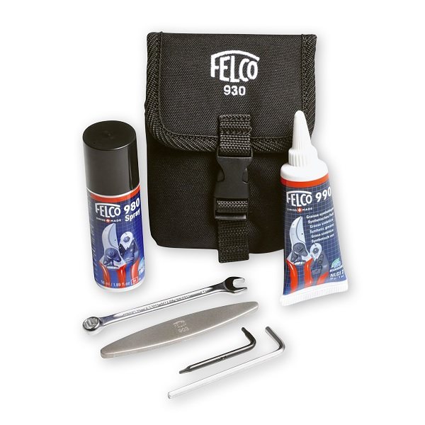 Kit d’entretien Felco 930 : 7 outils essentiels pour l’entretien de tous types de sécateurs, conçu par le leader mondial Felco des outils de jardinage professionnels.