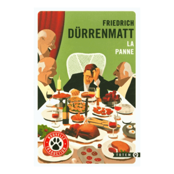 La panne : un roman de Friedrich Dürrenmatt où un automobiliste se retrouve jugé lors d’un étrange procès fictif par quatre vieillards lors d’un dîner.