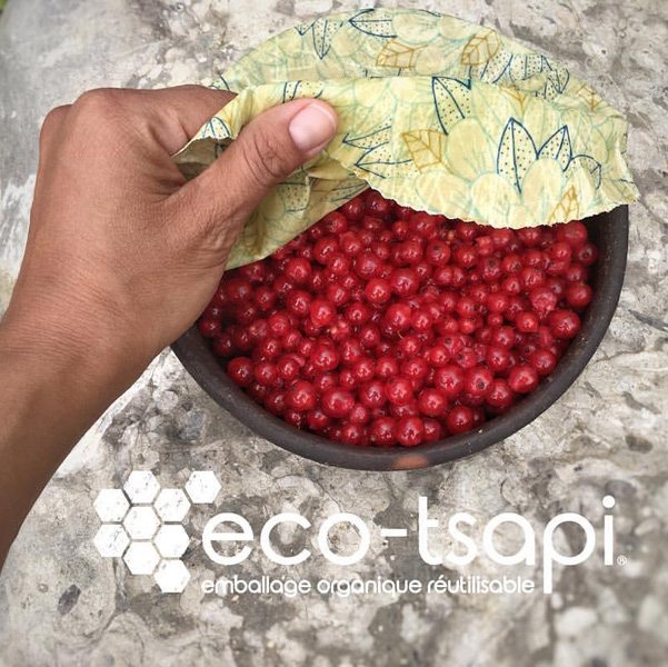 Les emballages eco-tsapi®, fabriqués artisanalement en Suisse, sont en coton bio enduit de cire d’abeille. Réutilisables et lavables, ils conservent la fraîcheur des aliments tout en remplaçant durablement le film plastique ou aluminium. Parfaits pour couvrir bols, saladiers, tartes, ou emballer fruits et sandwichs.