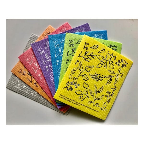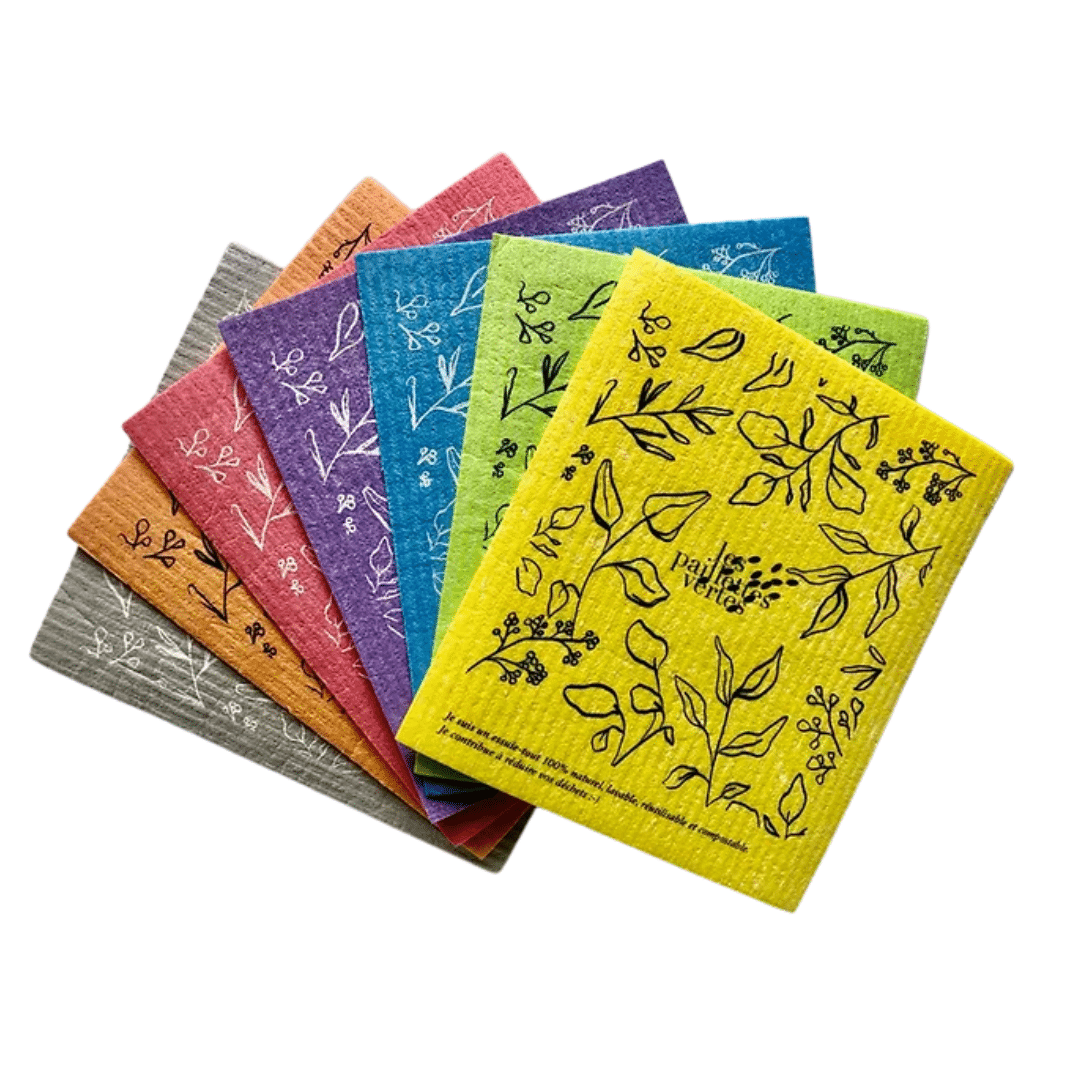 Carré Essuie-tout Floral : lot de 7 pièces colorées, ultra-absorbantes et écologiques. 100% fibres naturelles, lavables 300 fois, biodégradables en 24 semaines.