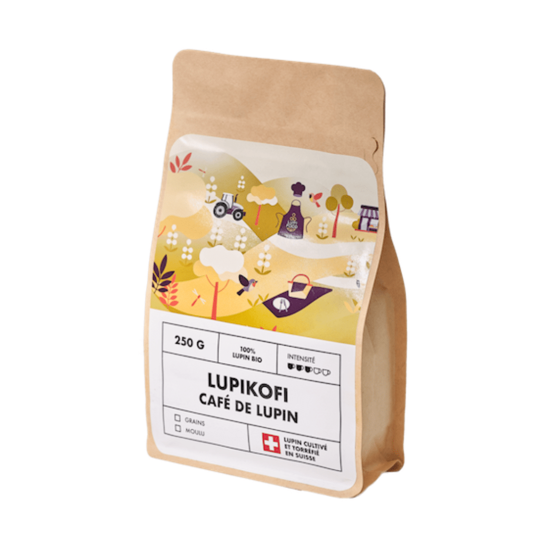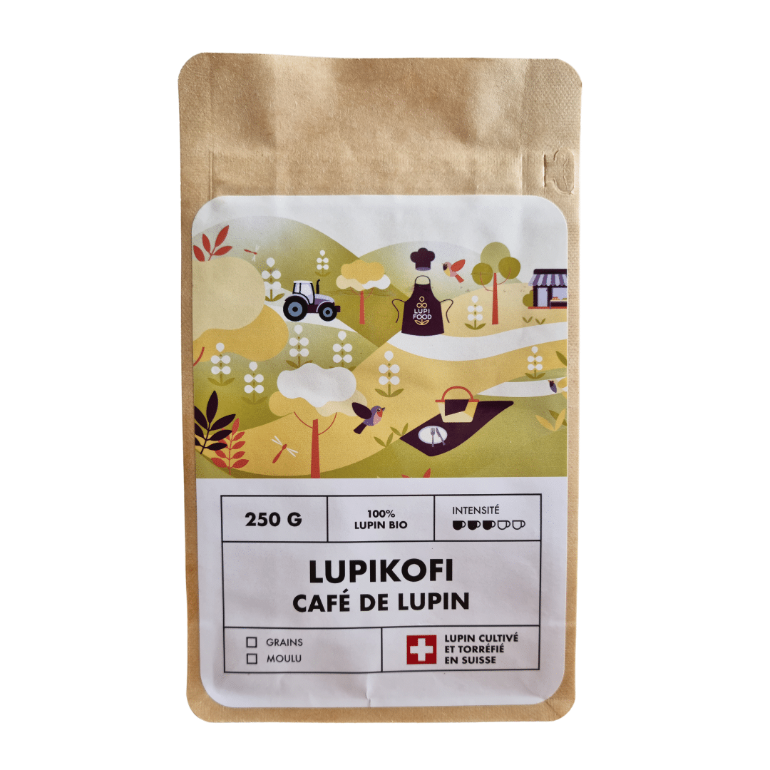 LupiKofi en grains est une savoureuse alternative au café, sans caféine ni acidité. Cultivé et torréfié en Suisse Romande à partir de grains de lupin bio, il séduit par ses arômes doux et légèrement noisettés.
