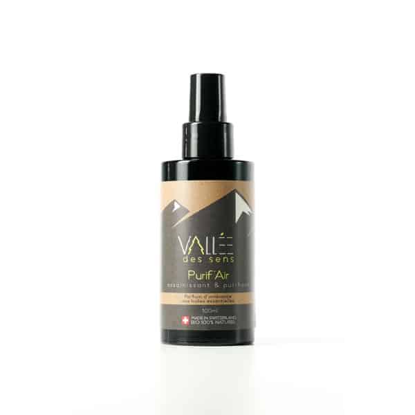 Purif’air, parfum d’ambiance Bio aux huiles essentielles naturelles. Purifie l’air, apporte fraîcheur et propreté. 100% bio, sans conservateur, fabriqué dans les Alpes suisses.