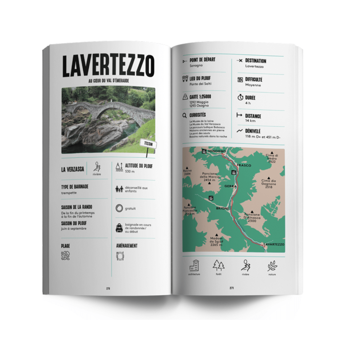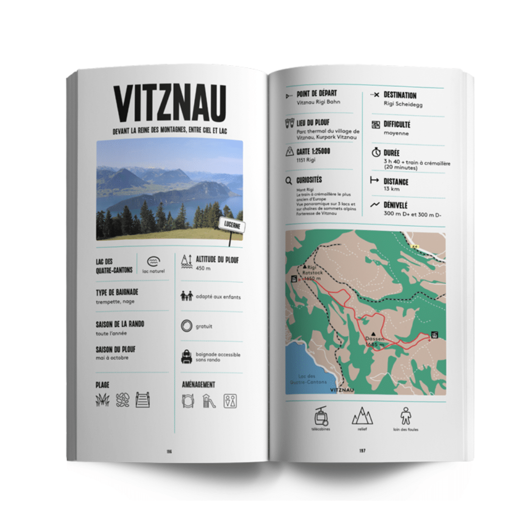 Randos plouf en Suisse : 40 itinéraires de randonnée avec baignade à travers la Suisse, adaptés aux familles, avec tracés GPX et infos pratiques.