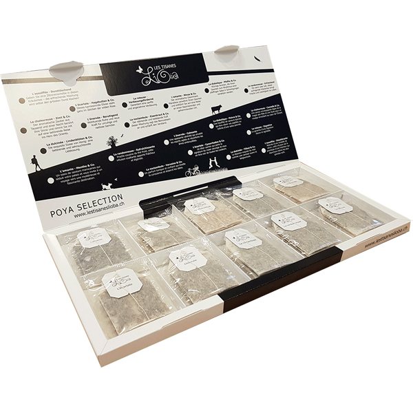 Goûter à tout l’assortiment des Infusions Lioba? Grâce à la « Poya Selection« , vous pourrez tester les 10 saveurs de la gamme.