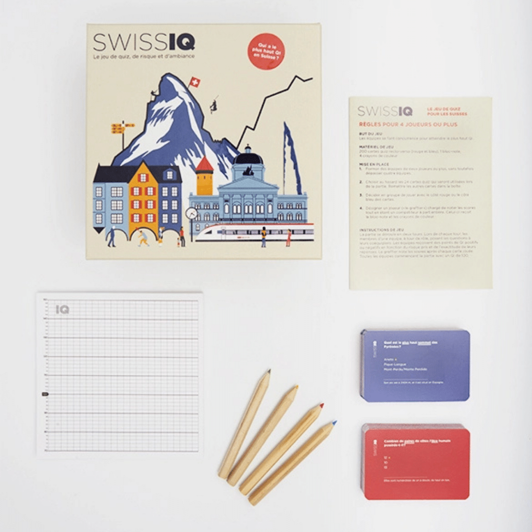 Composé de 400 questions à choix multiples, SwissIQ explore aussi bien les connaissances suisses que la culture générale. Les réponses sont comptabilisées en points de QI, ajoutant une touche originale et amusante à chaque partie. Les gagnants repartent avec une preuve tangible de leur performance… jusqu’à la prochaine revanche !