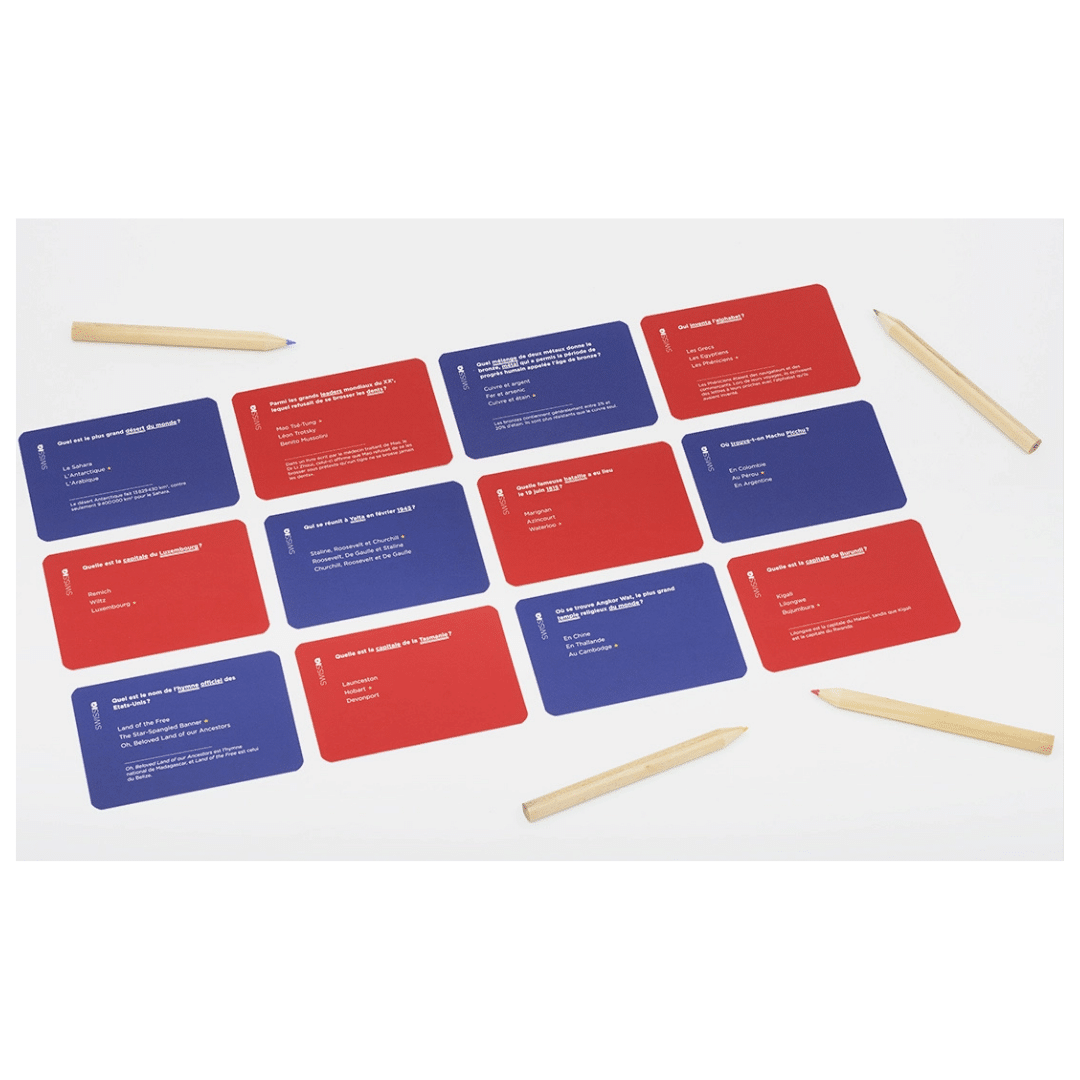 Questions intéressantes et anecdotes étonnantes autour de la Suisse, possibilité de jouer en équipes, comptage des points original et amusant, favorise l’apprentissage et la curiosité, et permet à tout le monde de gagner, quelles que soient ses connaissances.