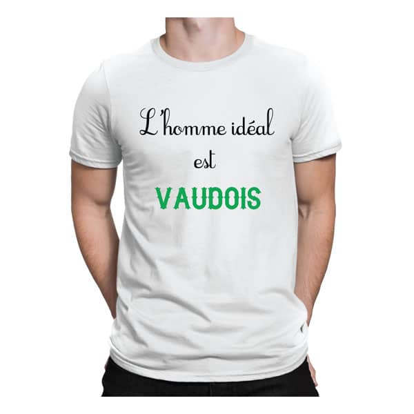 T-shirt l’homme idéal est vaudois : un t-shirt 100% coton bio, sérigraphié, fabriqué en Suisse par Atelier Suisse, disponible du S au XL.