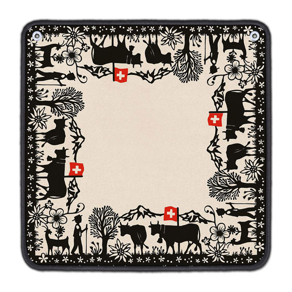 Tapis de jeux Poya en velours à poil ras. Dessous adhérent, 2 œillets de suspension. Dimensions 65×65 cm. Parfait pour des soirées de jeux entre amis.