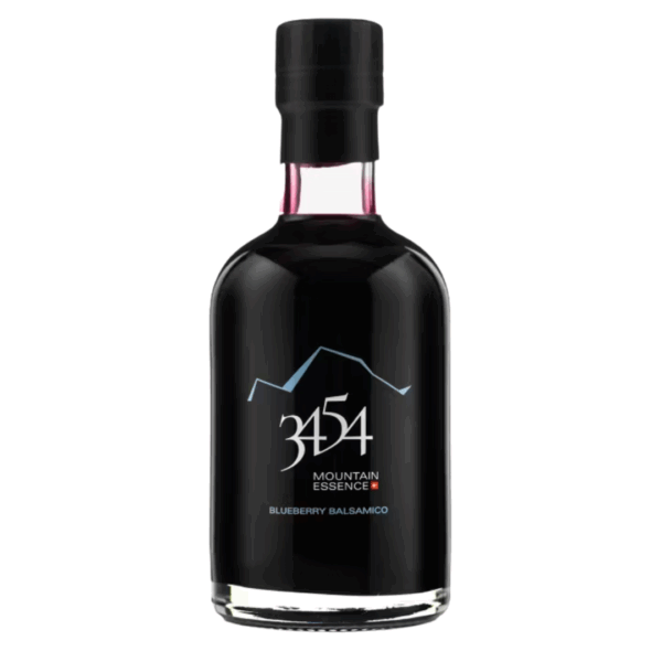 Vinaigre balsamique à la myrtille 3454 Mountain Essence : un condiment artisanal suisse, élaboré à 3454 mètres d’altitude, alliant myrtille et balsamique vieilli, recommandé par des chefs étoilés.