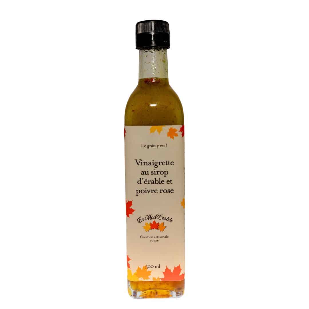 Contenance : 500 ml Ingrédients : Sirop d’érable 100% pur, Grade A Robuste (Québec, CA), huile de colza (CH), vinaigre de vin blanc (CH), poivre rose, moutarde (CH), sel (CH), ail et épices. Partenaire : En Mod’Erable